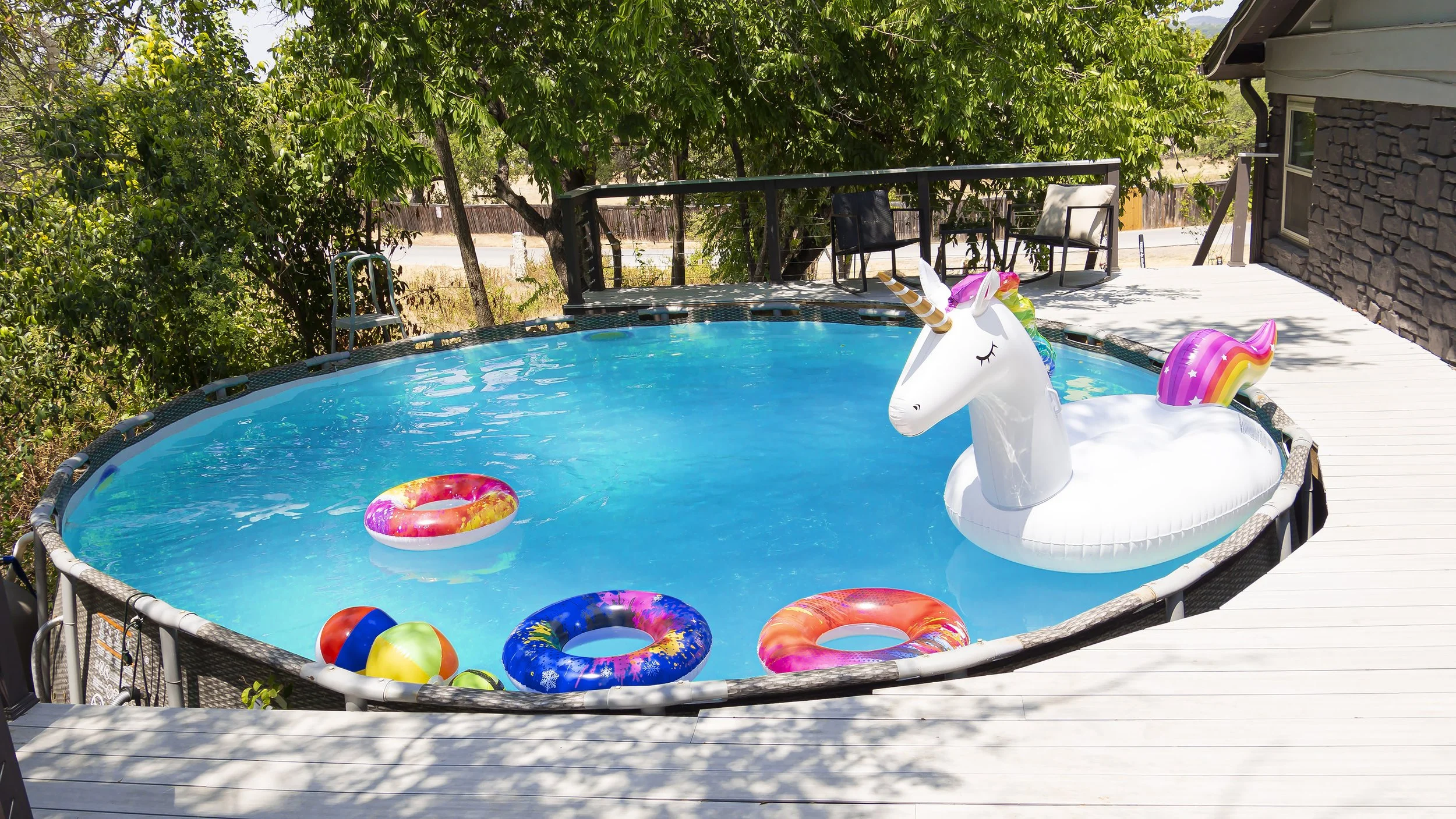▪ Groovy above-ground swimming pool + tanning deck